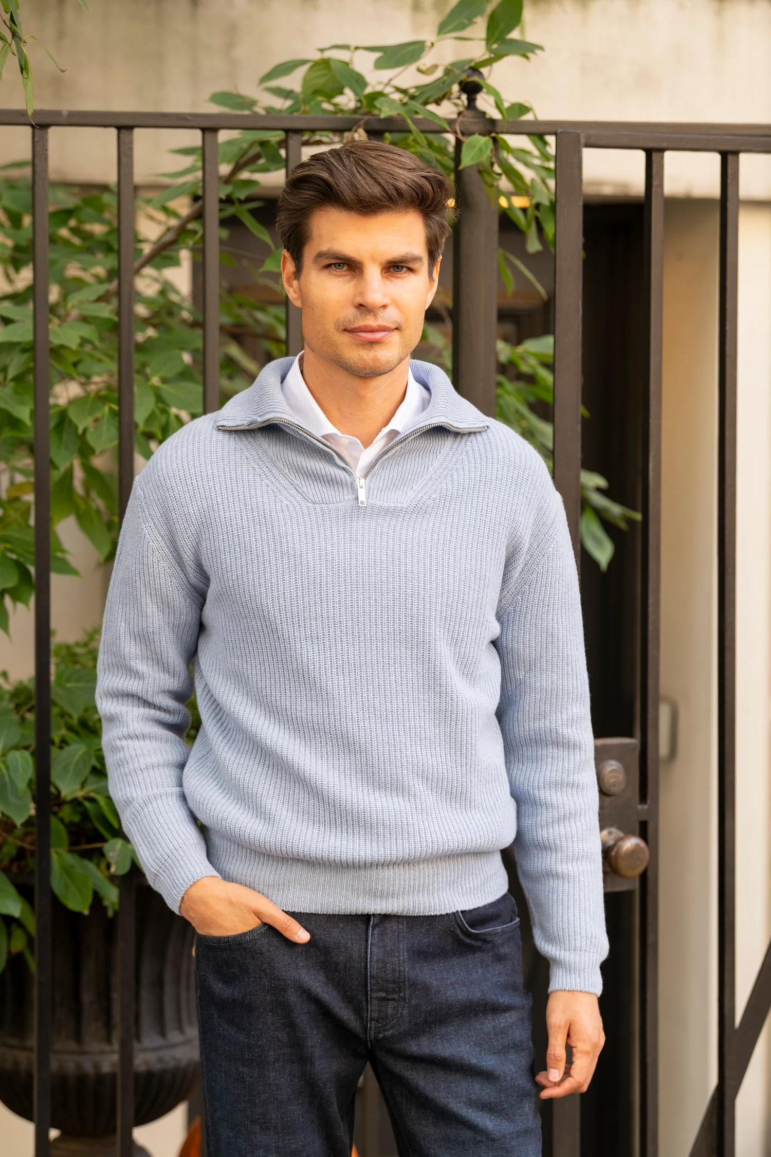 Made in Italy from 100% cashmere, The Briar Sweater combines refined luxury with modern versatility. Designed with fully ribbed knit detailing throughout, it features a high zip-up collar that adds both structure and warmth. Soft, lightweight, and effortlessly sophisticated, it offers the perfect balance of comfort and polish.