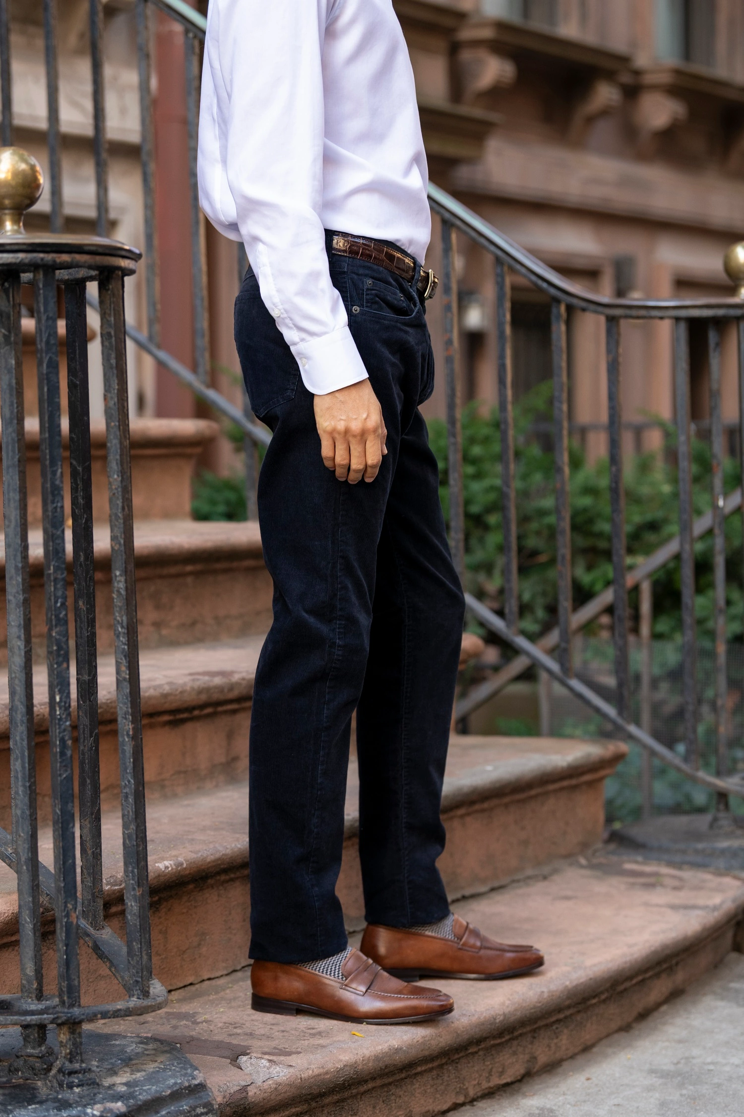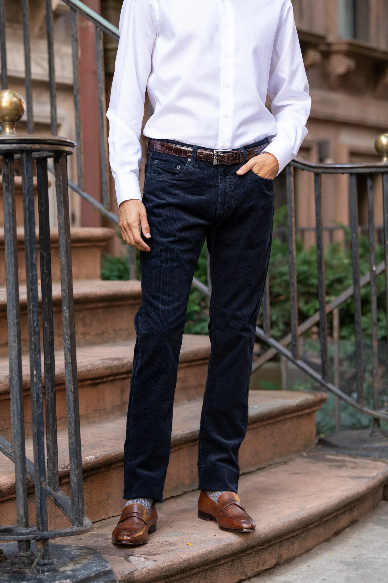 A timeless wardrobe essential, The Classic Corduroy is reimagined in a soft cotton-stretch blend that offers all-day comfort and ease of movement. Designed in a modern slim fit with a five-pocket layout, belt loops, and a clean jean bottom, this versatile style transitions effortlessly from day to night.