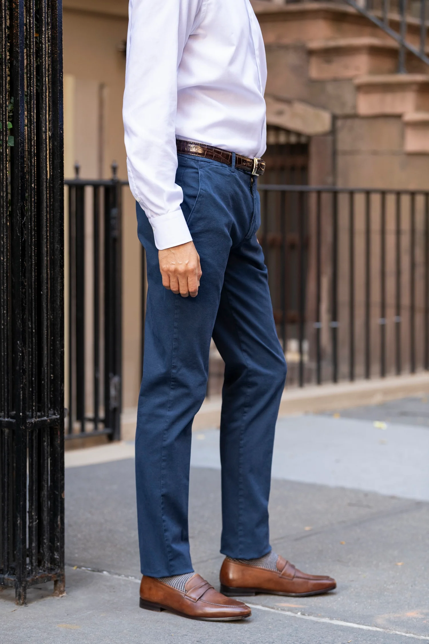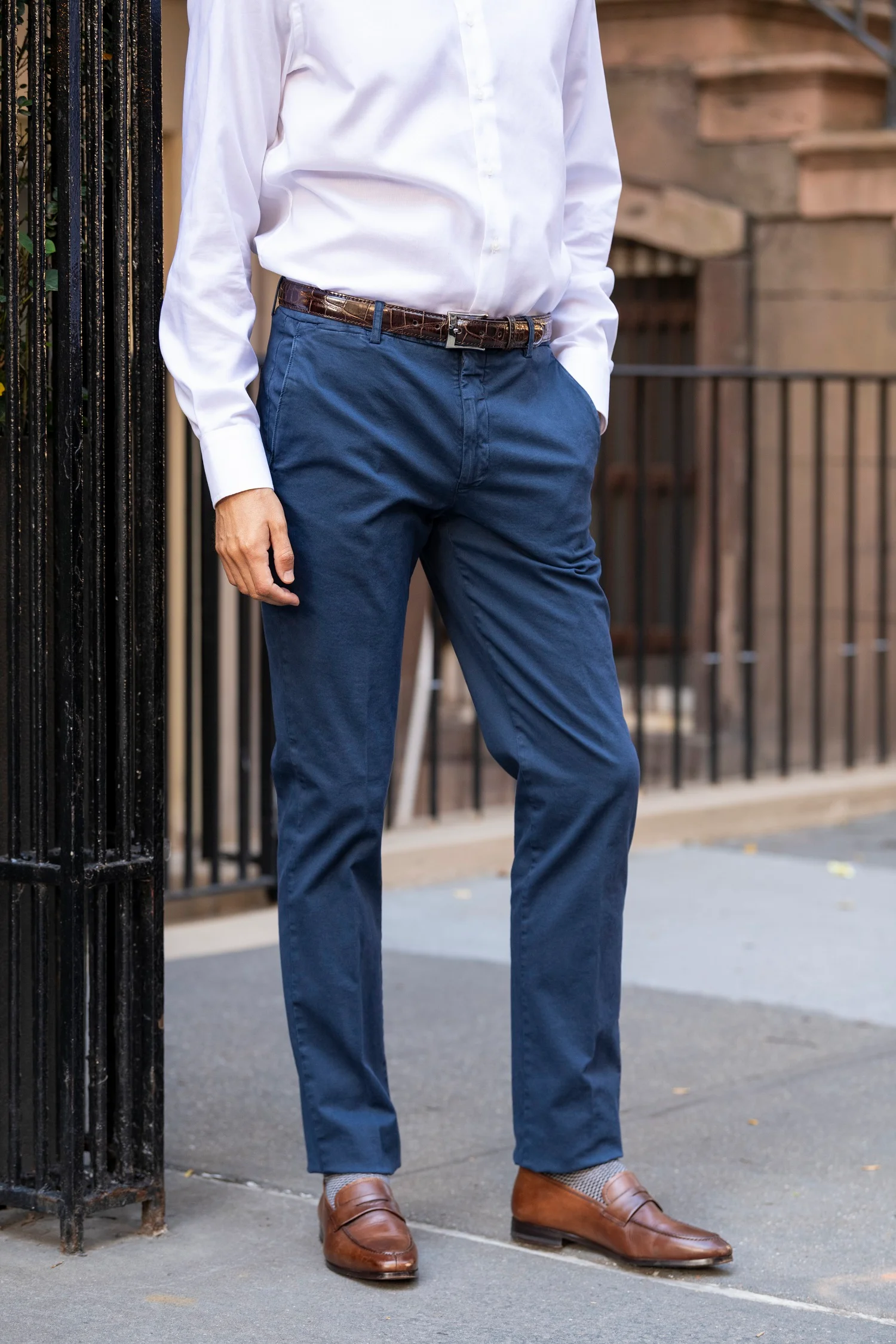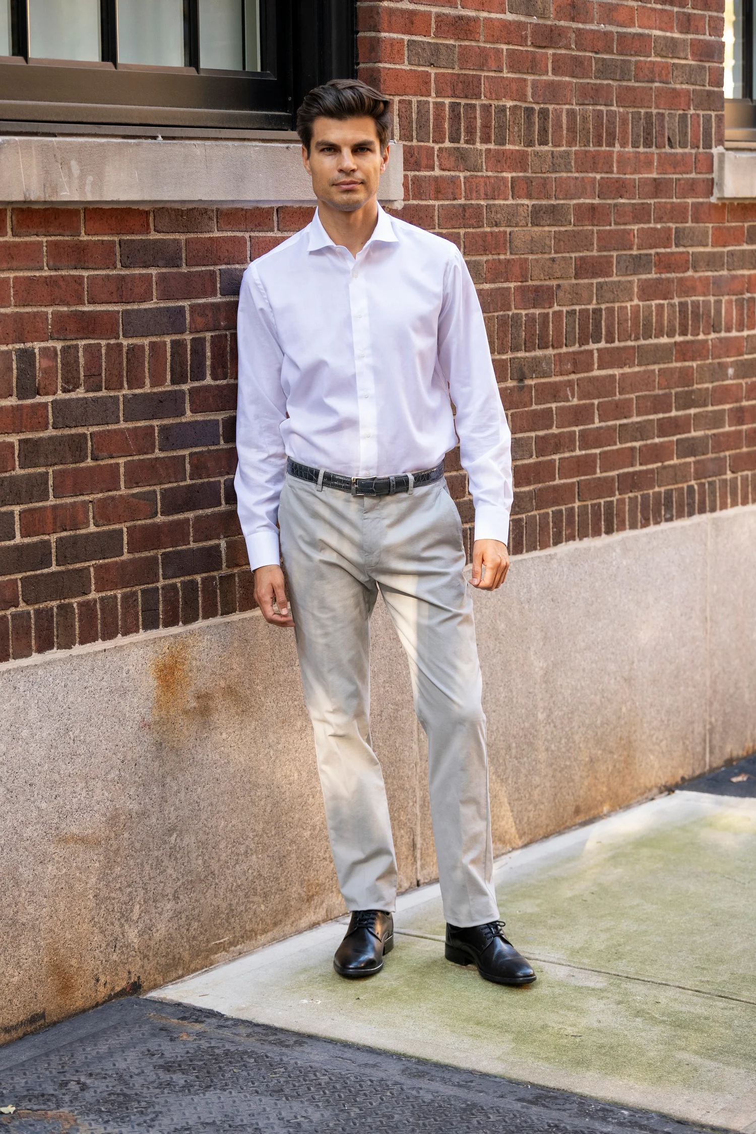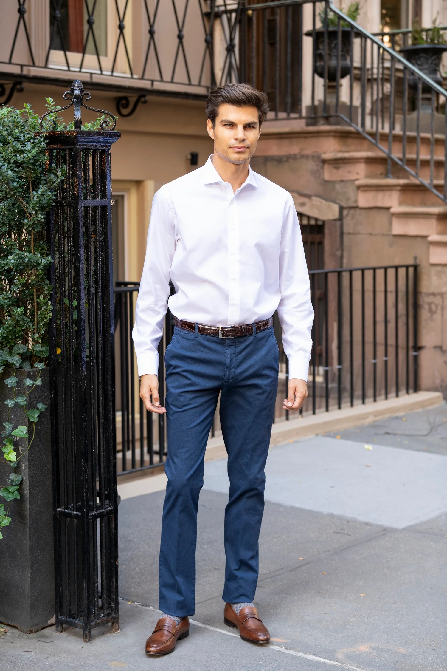 The Everyday Pant is crafted in Italy from premium cotton with a touch of stretch, delivering all-day comfort without compromising sophistication. Designed in a modern slim fit, it features two front slanted pockets, two back pockets with button closures, belt loops, and a clean plain bottom for a polished, versatile look.