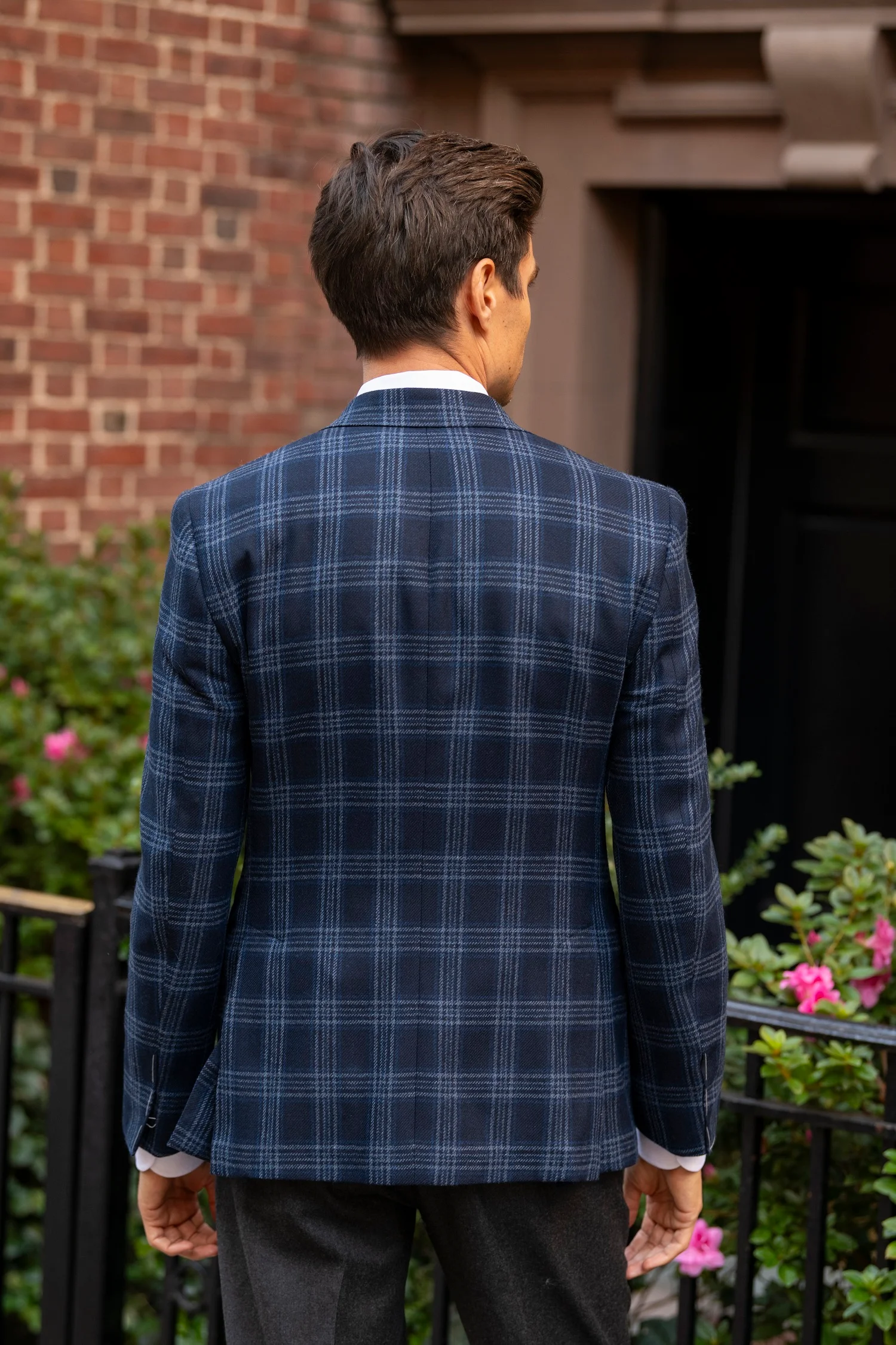 Made in Canada from 100% cashmere woven in Italy, The Hawthorne Blazer is the definition of refined luxury and timeless sophistication. Designed with a two-button front closure, notch lapel, navy suede melton, double vent, and a classic chest pocket, it offers a polished silhouette with exceptional comfort and ease.