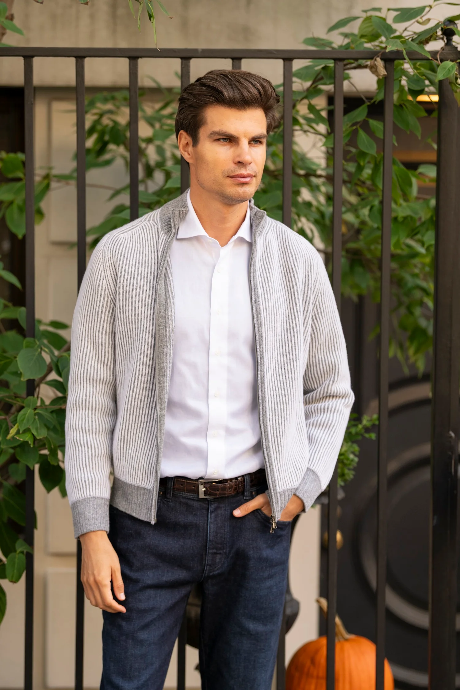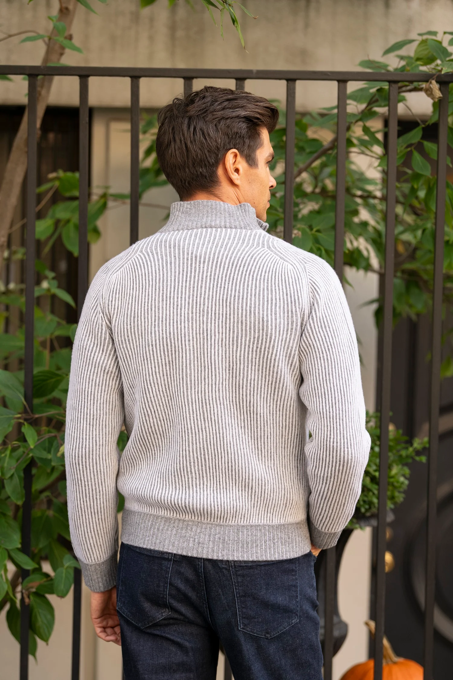 Made in Italy from 100% wool, The Mercer Sweater blends casual ease with refined craftsmanship. Designed with a full zip closure and fully ribbed knit detailing, it offers both texture and structure within a clean, modern silhouette. Comfortable, versatile, and effortlessly polished, it’s the ideal layering piece for transitional weather.