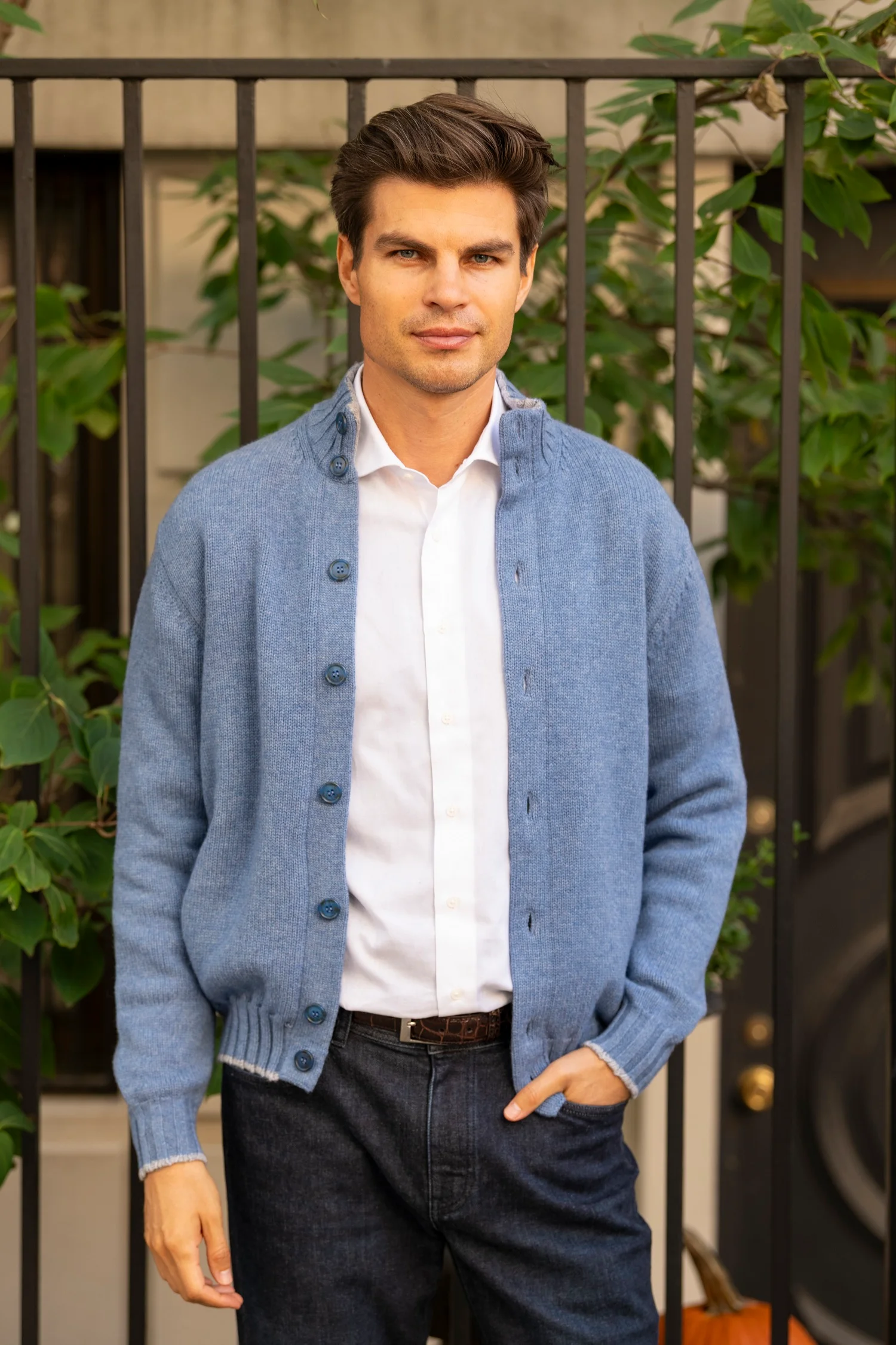 Made in Italy from a luxurious wool and cashmere blend, The Penmore Cardigan brings together timeless craftsmanship and modern sophistication. Designed with a full button closure and two front side pockets, it features refined ribbed detailing along the collar, cuffs, and waistband for a clean, elevated finish.