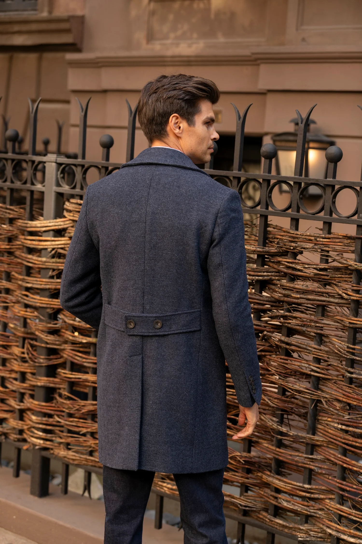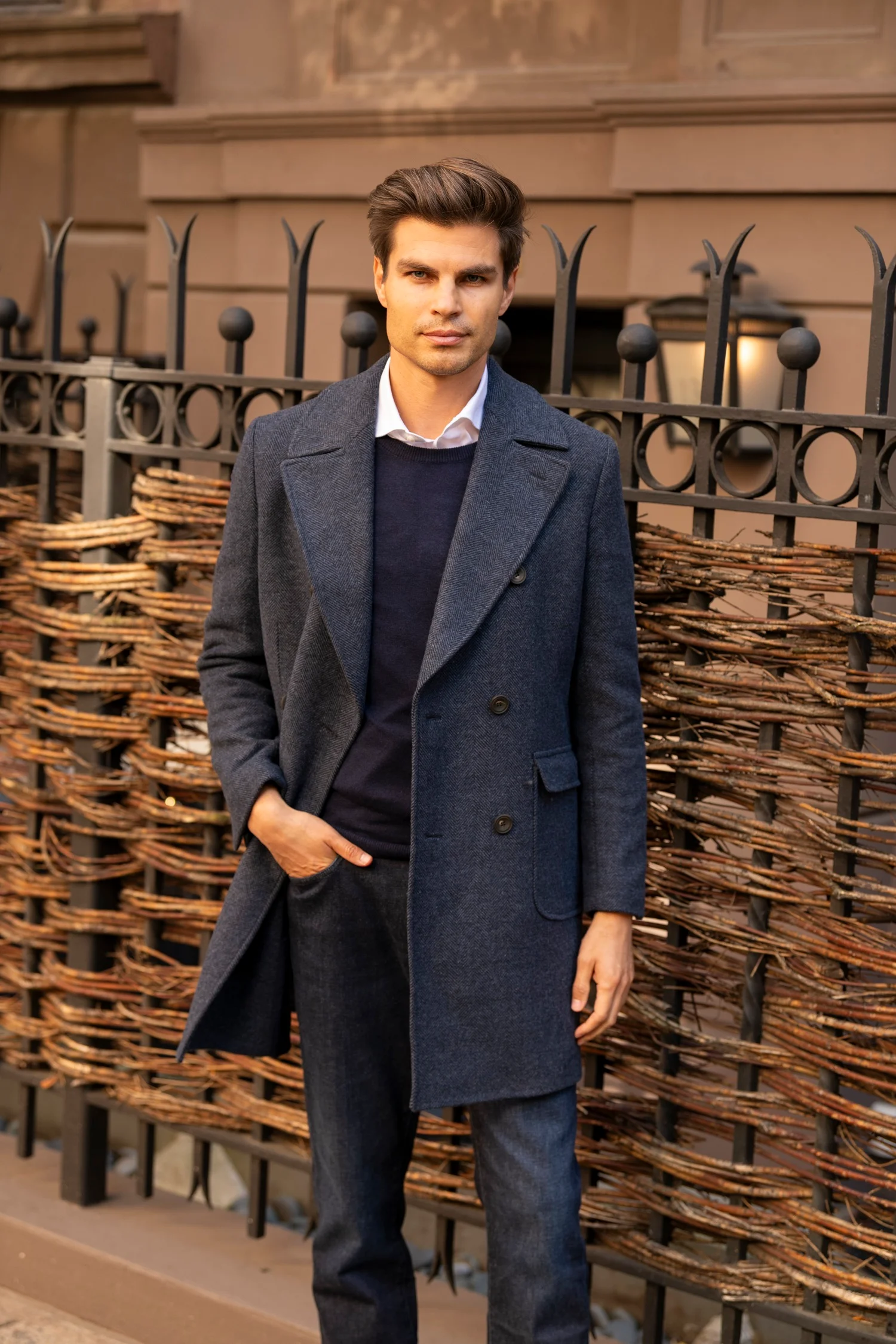 Made in Italy from a premium wool blend, The Ridge Overcoat offers a modern interpretation of classic tailoring. Designed with a double-breasted closure and peak lapel, it delivers the perfect balance of strength, presence, and refined sophistication. Fully lined for added comfort, it features two front flap pockets and a single vent, creating a timeless silhouette that elevates any cold-weather ensemble.