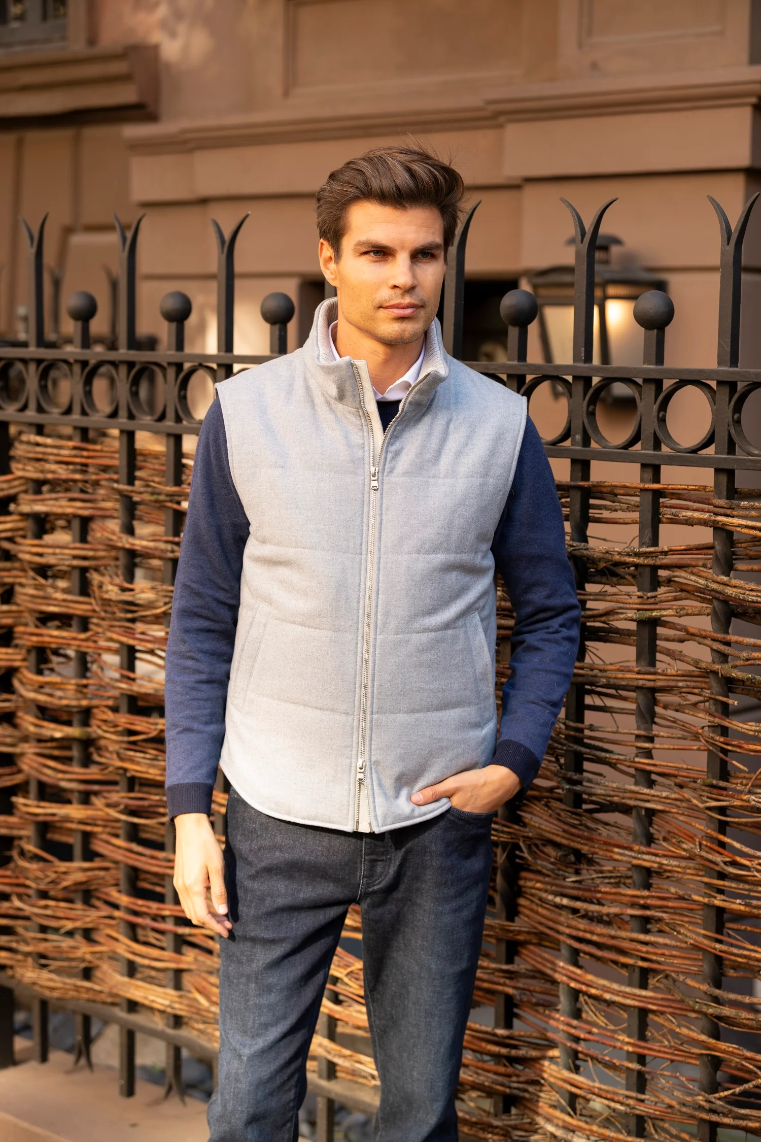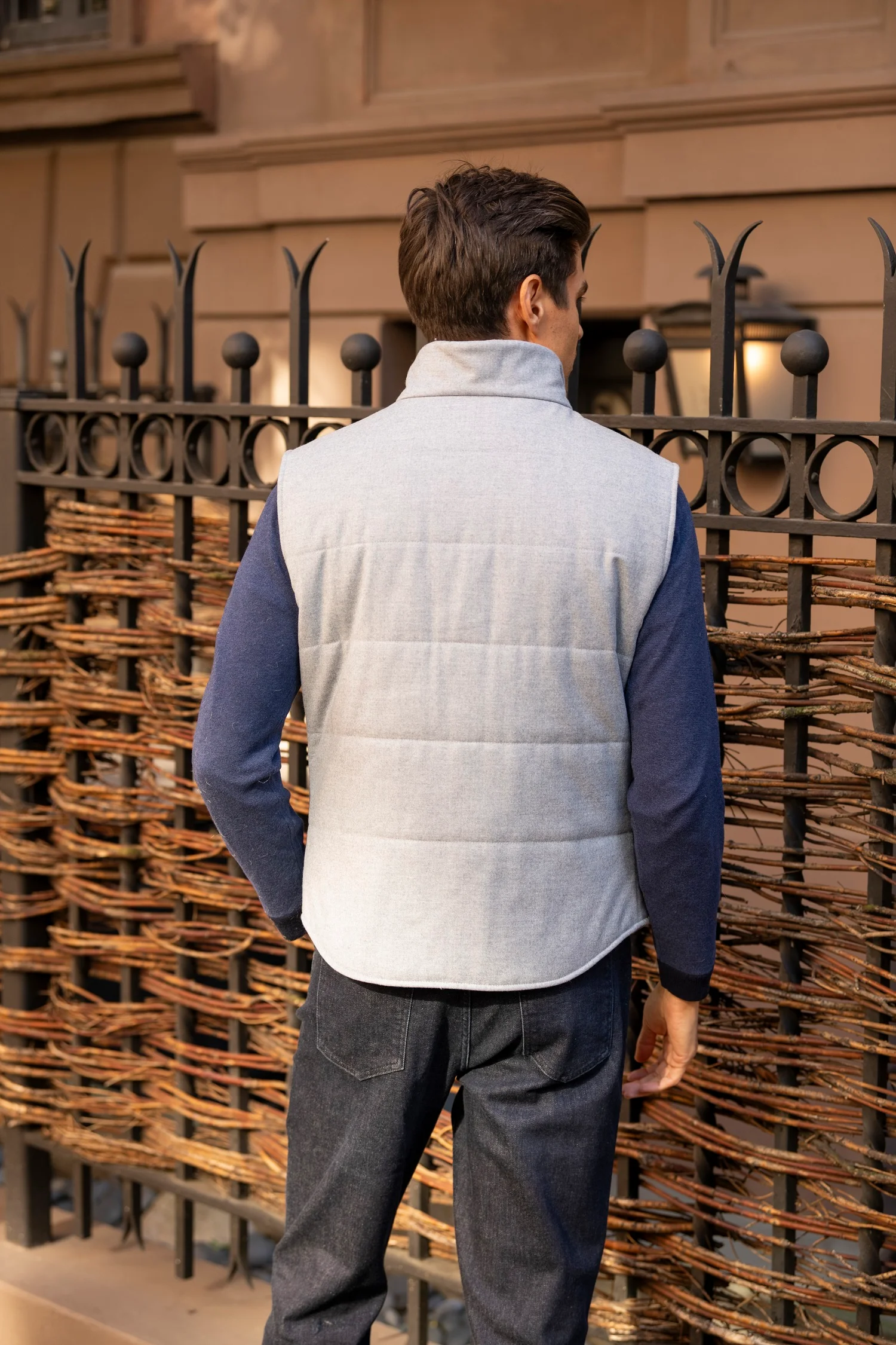 Made in Italy from a luxurious wool and cashmere blend, The Savile Vest is an elevated essential that seamlessly blends sophistication with everyday function. Perfect for work, dinner, or refined casual wear, it features a sleek front zipper closure, two front side pockets, and a soft knit inner collar for added comfort.