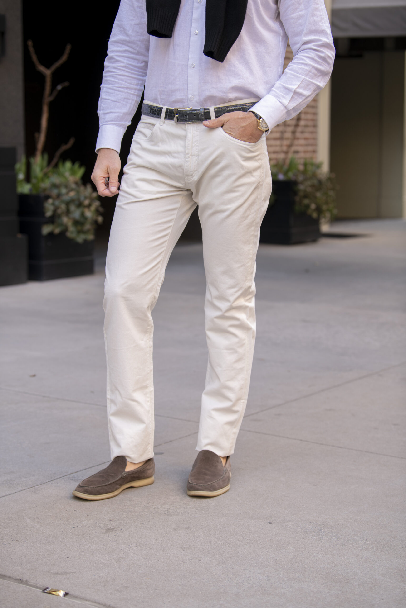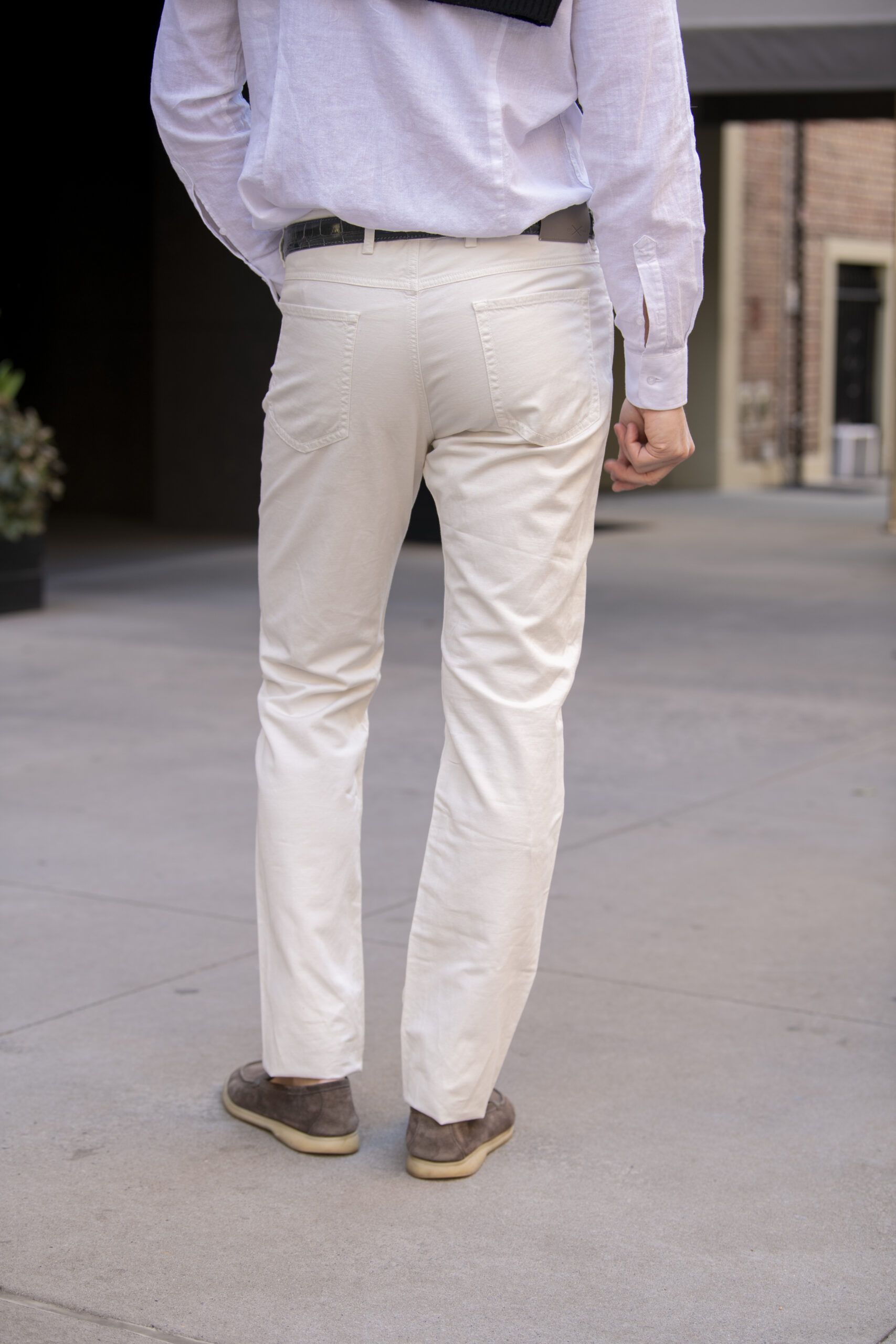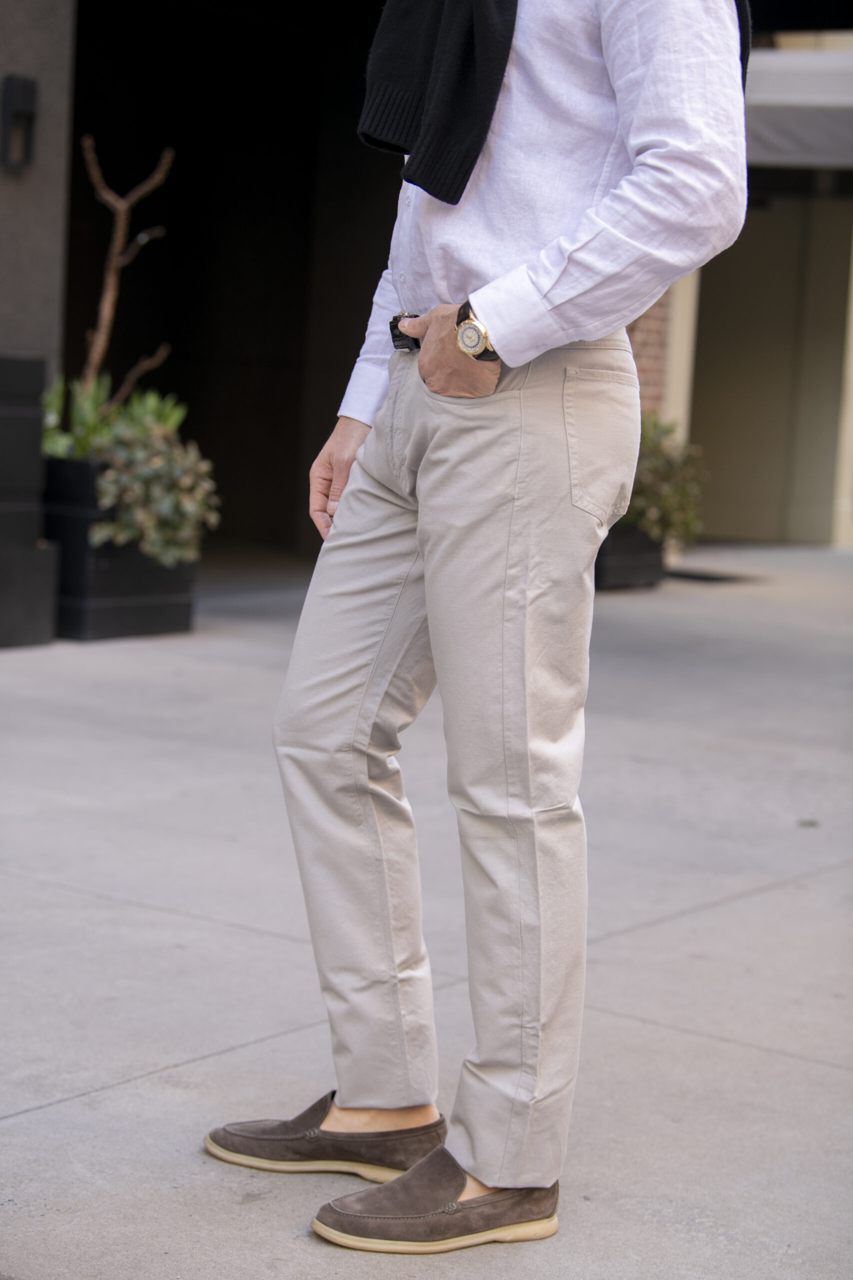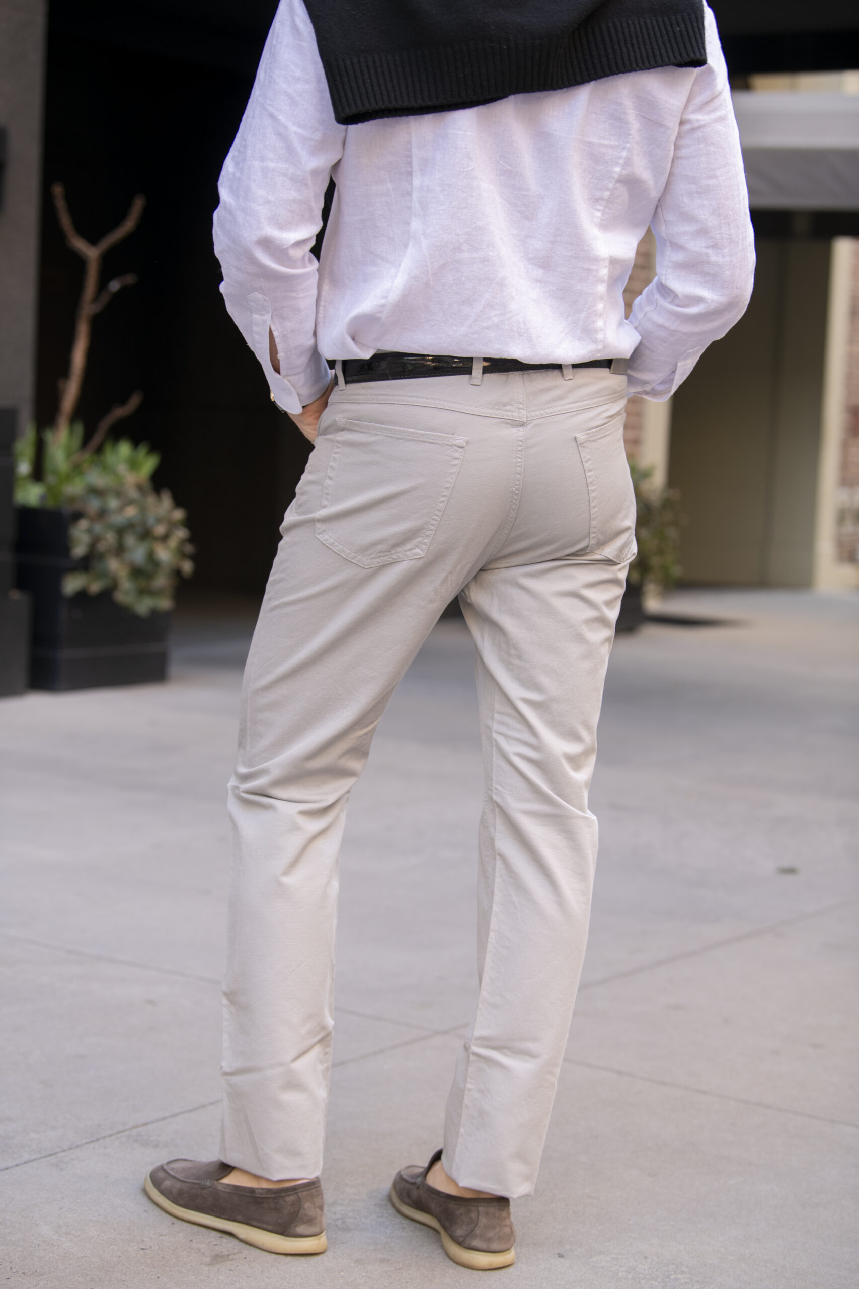 Designed with a classic 5-pocket construction, this pant balances casual ease with refined tailoring—perfect for warm days, travel, or relaxed office wear.