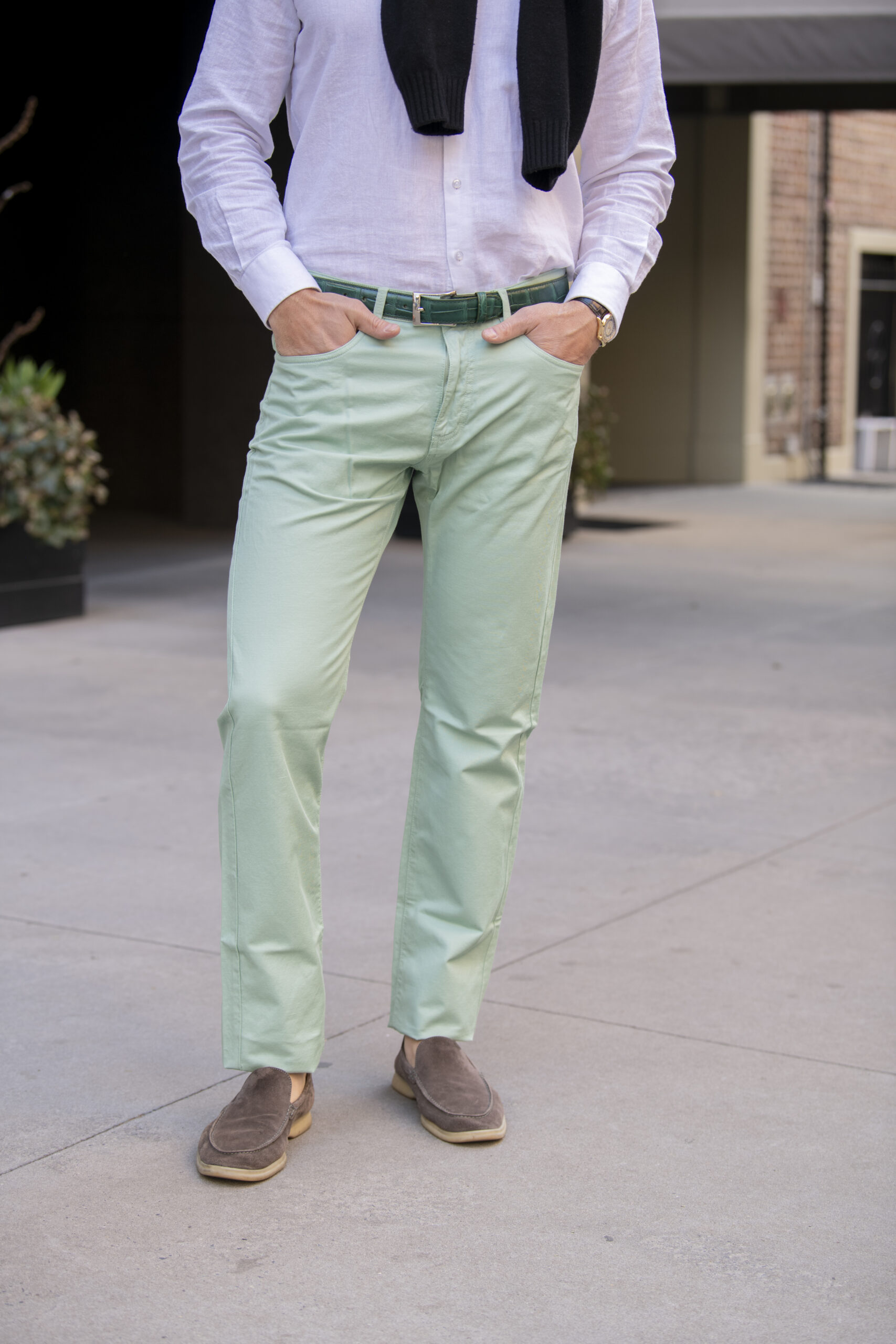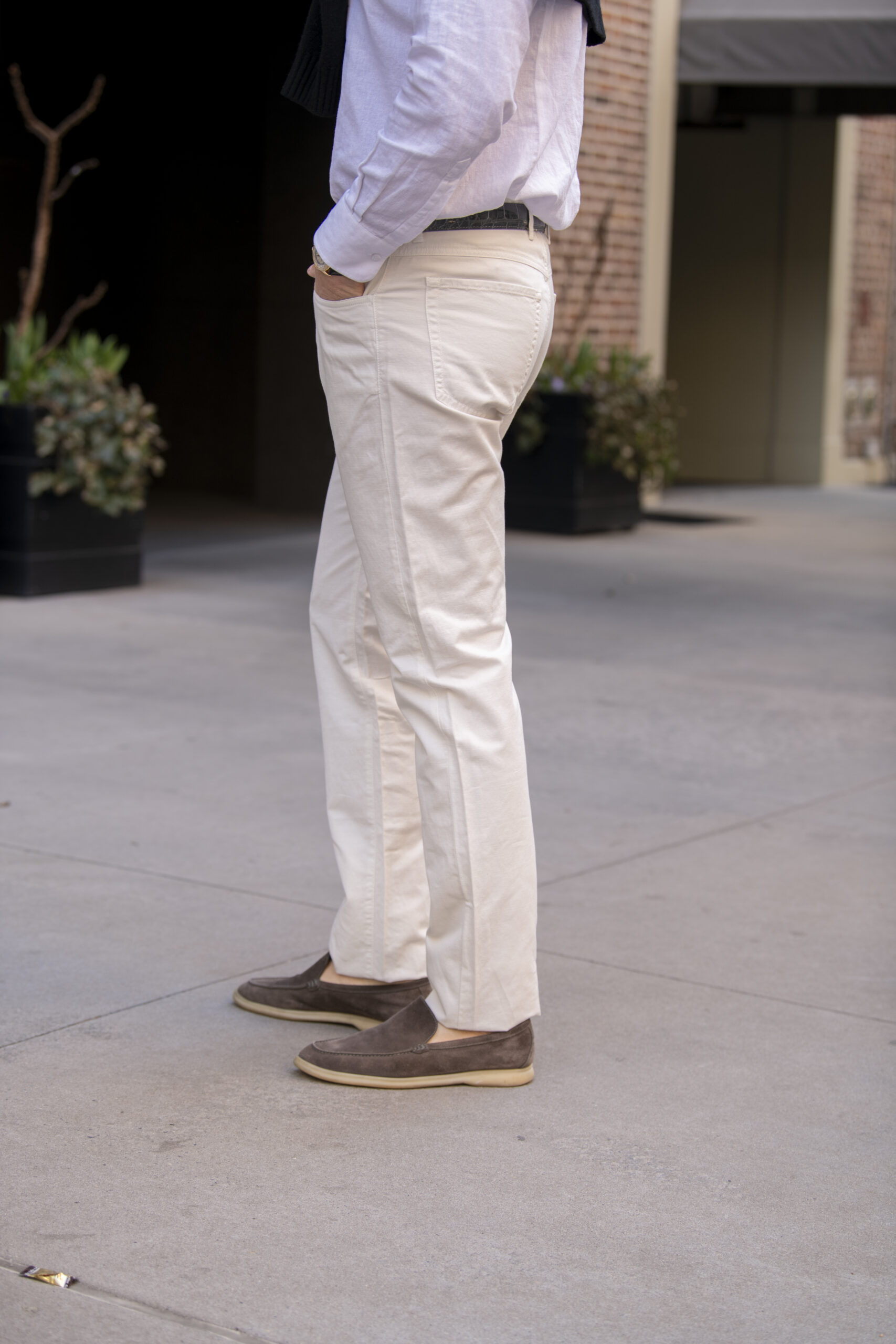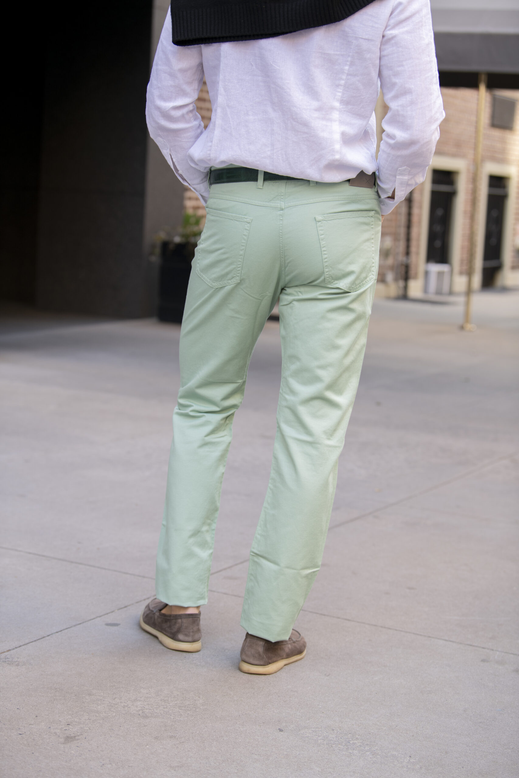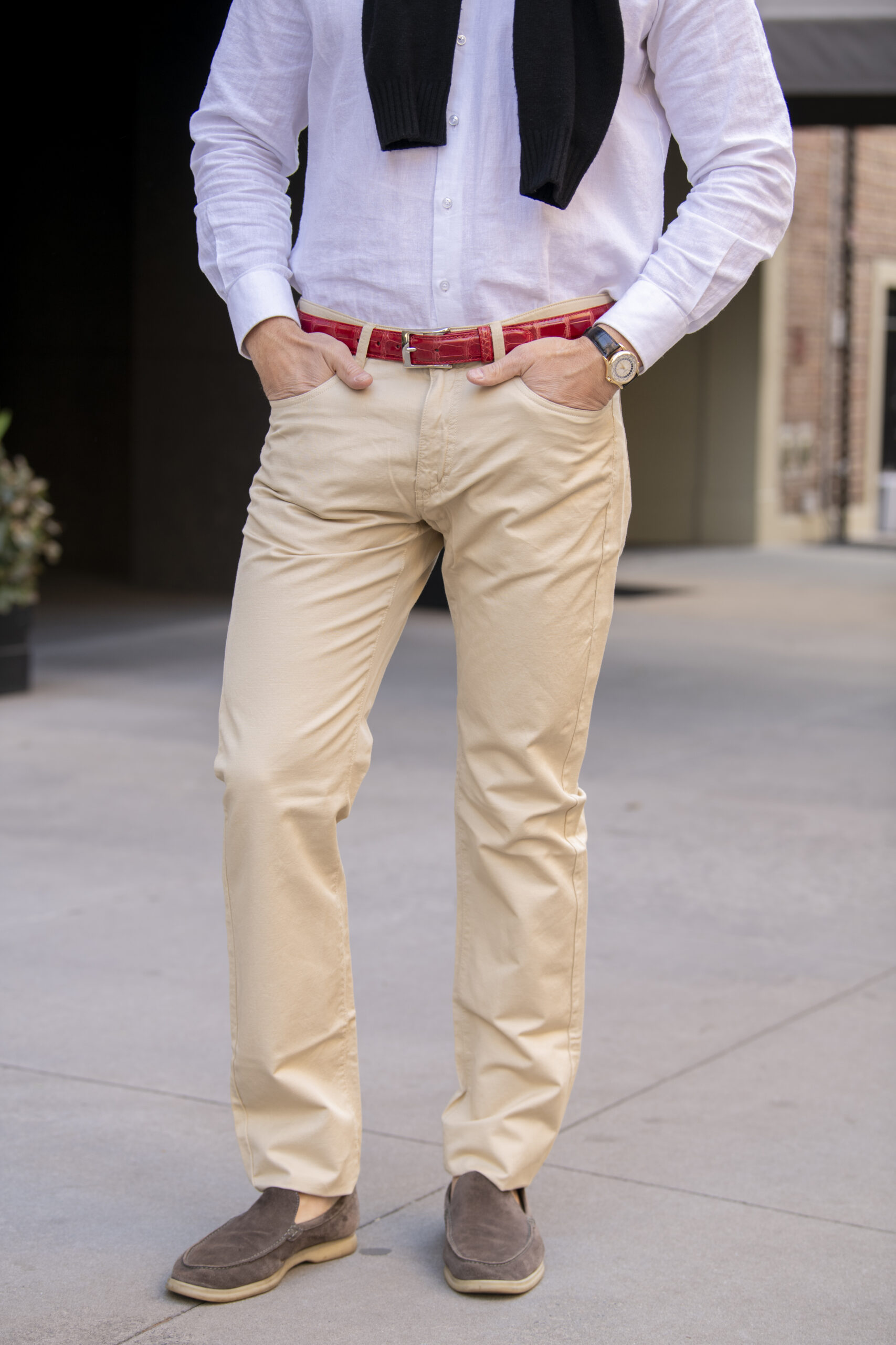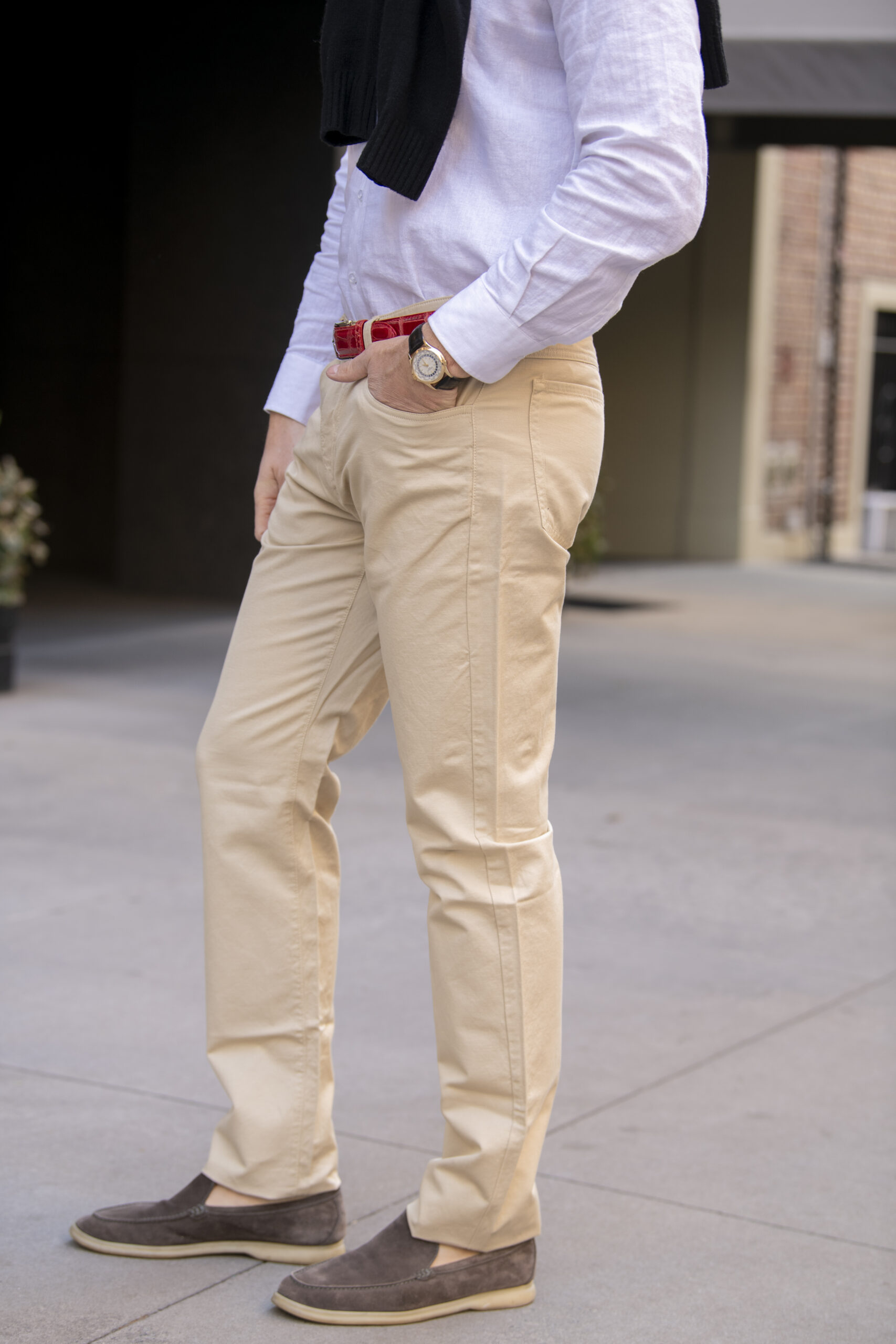 Designed with a classic 5-pocket construction, this pant balances casual ease with refined tailoring—perfect for warm days, travel, or relaxed office wear.