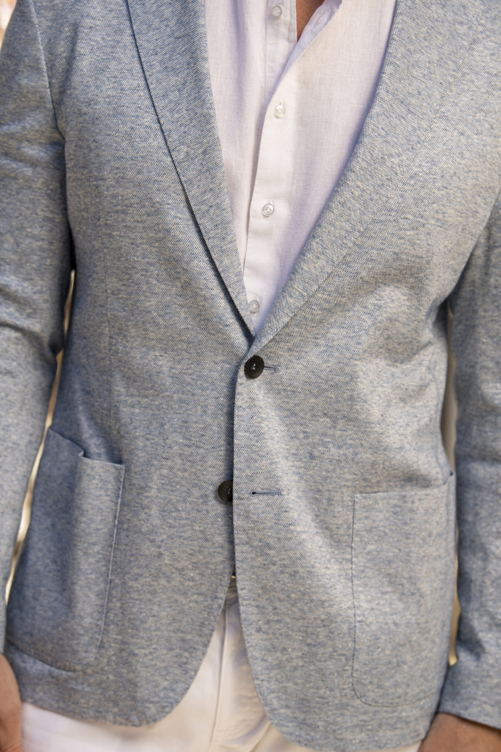 Made in Italy from a breathable blend of linen and cotton, The Strato Jacket offers a modern approach to warm-weather tailoring. Crafted in a jersey knit, it delivers exceptional comfort, stretch, and airflow—perfect for summer days and cooler evenings. Completely unconstructed with lined sleeves, it features a two-button closure, notch lapel, patch pockets, pick stitching, and double vents for ease of movement. Lightweight, soft, and effortlessly refined, it’s an ideal piece for elevated summer dressing.