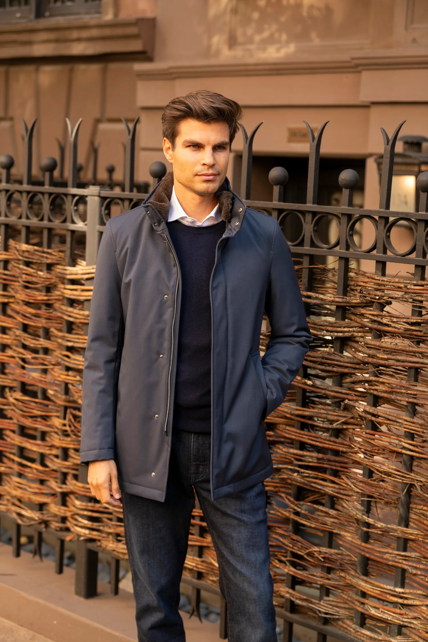 The high collar is lined with soft beaver-effect faux fur, adding a rich and luxurious touch, while the zip and press-stud closure and side pockets ensure everyday ease. Balancing function and sophistication, this coat embodies Herno’s signature approach to elegant, weather-ready design—perfect for city dressing in any season.