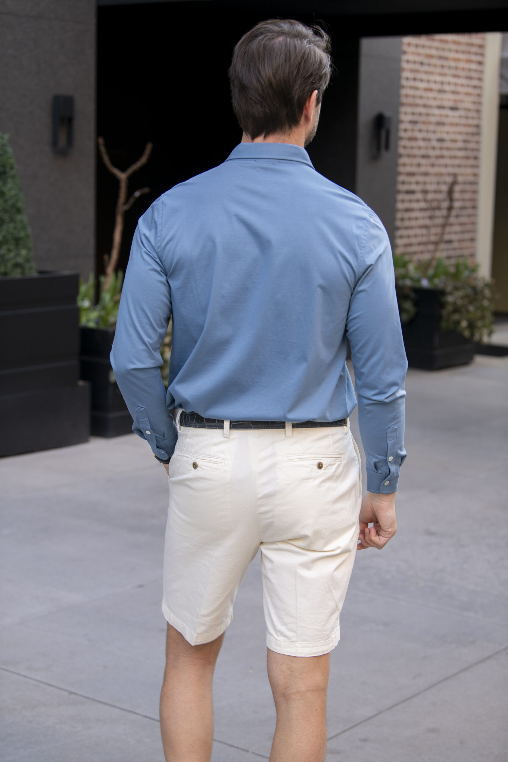 Made in Italy from 100% cotton, The Varen Shirt delivers a soft, slightly stretchy feel for all-day comfort with a refined touch. Designed with a semi-spread collar, long sleeves, and finished with mother-of-pearl buttons, it strikes the perfect balance between casual ease and elevated style. Versatile and effortlessly polished, it can be worn on its own or dressed up for a more refined look.