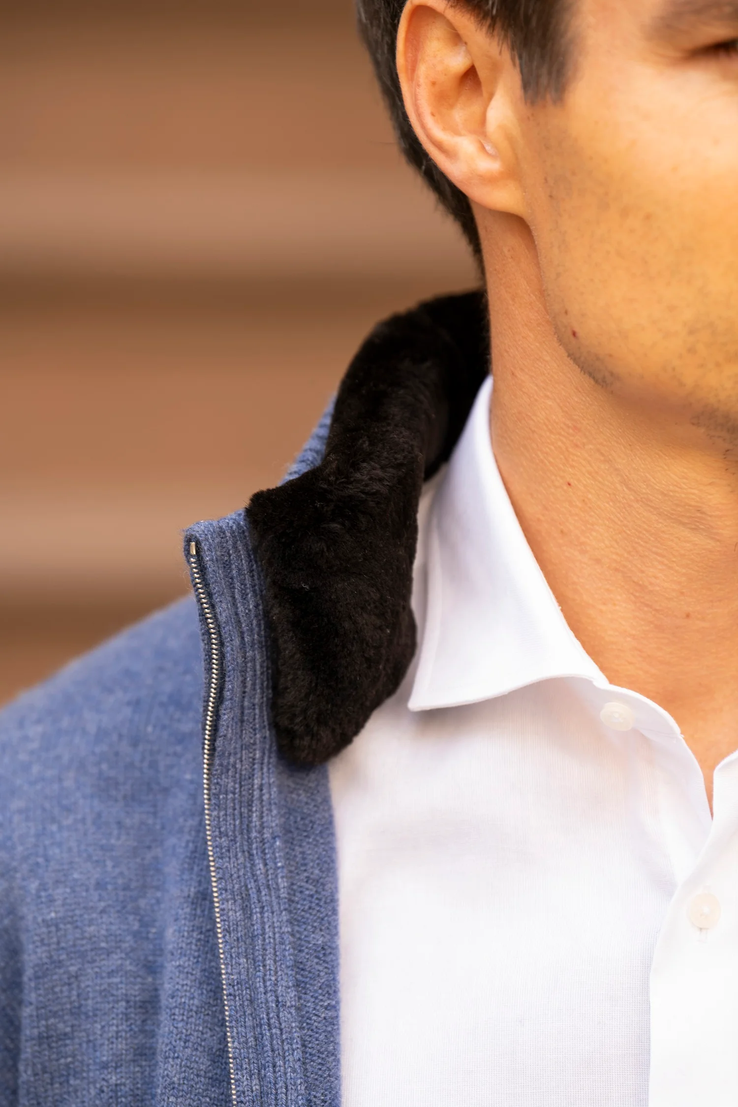 Its standout feature is the detachable inner collar crafted entirely from 100% beaver fur, allowing you to shift the look from understated refinement to bold sophistication with a single detail. Pair it with jeans, cotton pants, or corduroys, and layer it under your favorite outerwear for an effortlessly elevated finish.